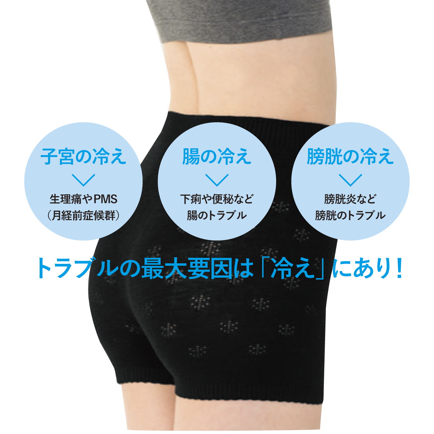 ウームアップショーツは女性の悩みである冷えの改善にアプローチ。毎日継続して履いていただくことで「育菌」を促進し、健やかな美をサポートします。