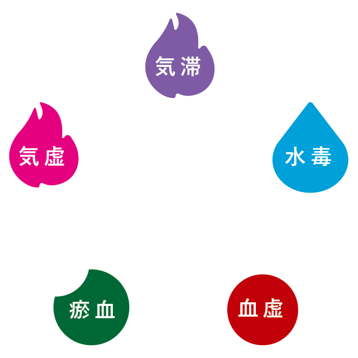 B2とF2→気の量は十分あるのに、身体の中の気の流れが悪く停滞している状態。主な原因としてストレスなどがあげられています。