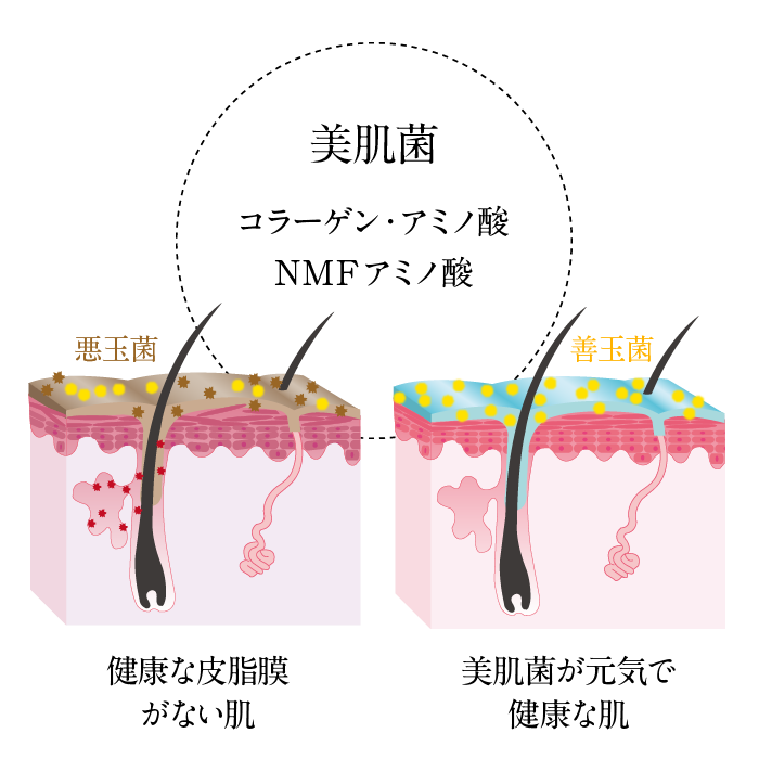 本来肌はコラーゲン・アミノ酸やNMFアミノ酸から構成されており、それらは美肌菌から生み出されています。