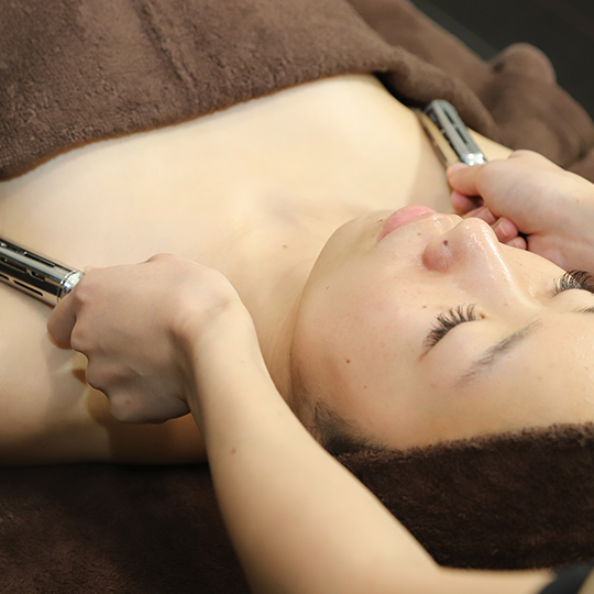 東洋医学の考えにある体内の流れ【気・血・水】にアプローチする専用オイルと特殊なウェイブセラミックで自律神経を穏やかに導き美肌菌バランスを整えるトリートメントケア・アイテムです。