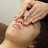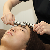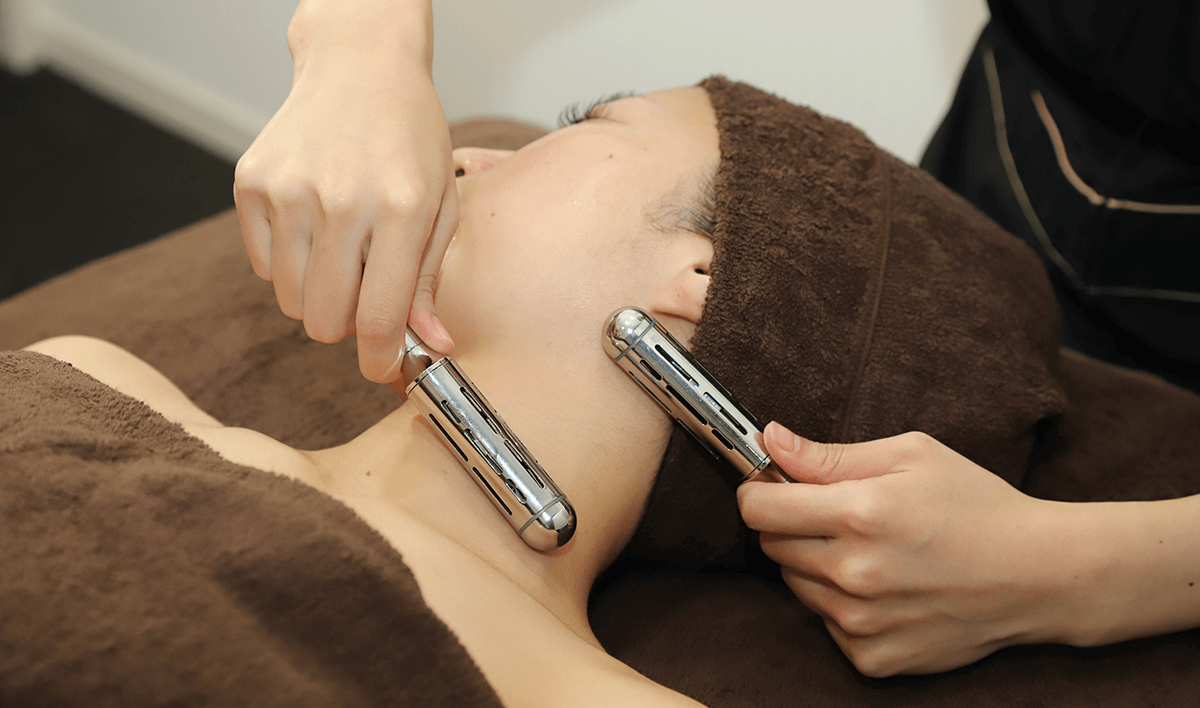 ウェブセラミックで顔の筋肉をほぐしながら、経絡・リンパを流す。